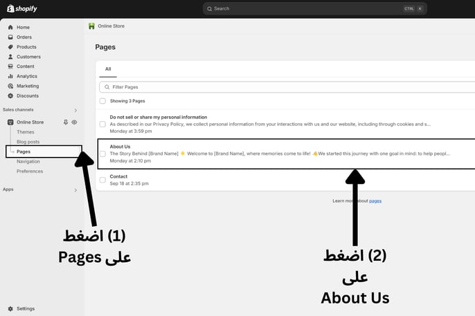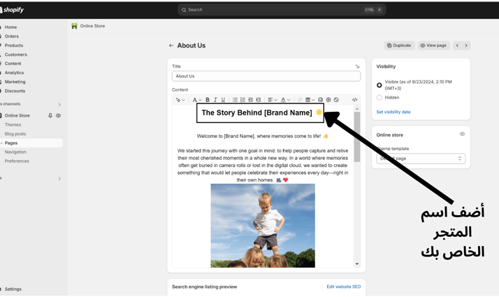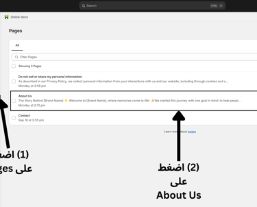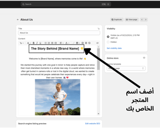 قم بتحديث معلومات "About Us" لتعكس اسم متجرك الجديد وتقديم قصة فريدة حوله. اضغط على هذا الرابط