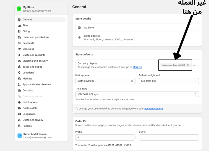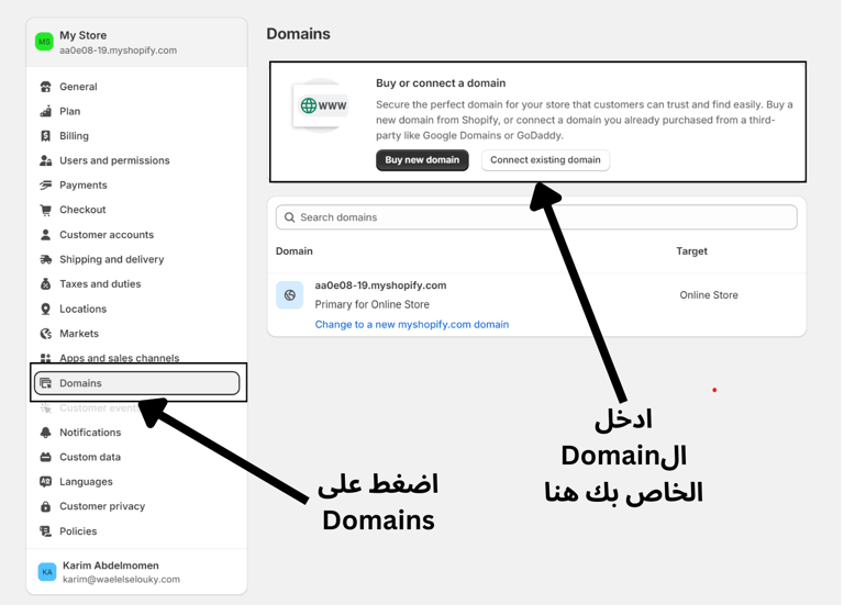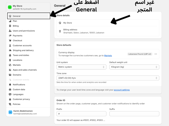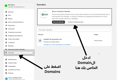 (١) تغيير اسم المتجر وشراء نطاق خاص به