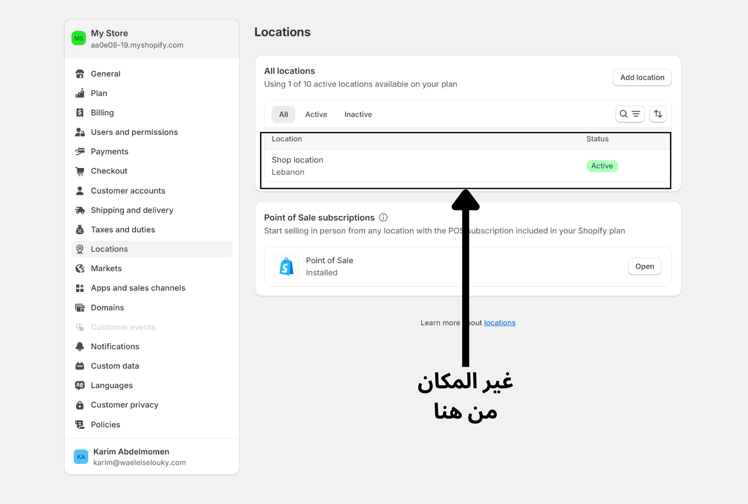 (٢) تغيير موقع المتجر إلى المكان الذي ترغب في البيع فيه