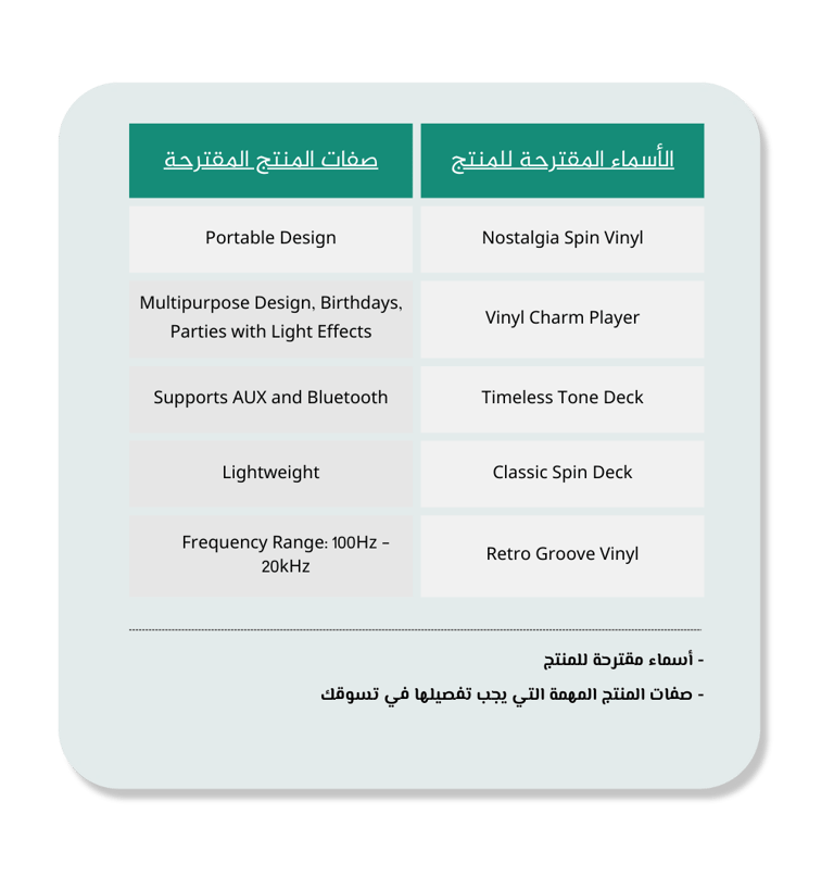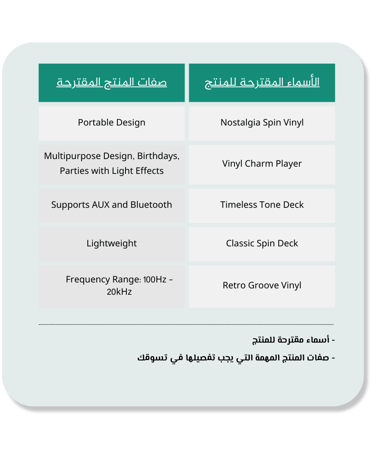 مميزات المنتج و صفاتها مع اسامي اخري للمنتج مٌرشحة لتتميز عن في السوق